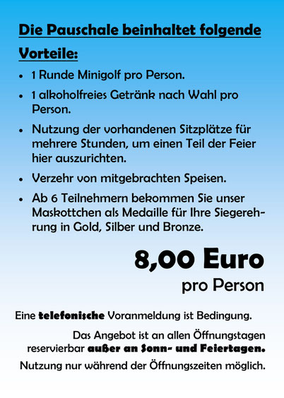 Für nur 20 Euro können jeweils Kinder und er Erwachsene 5 Runden Minigolf spielen.